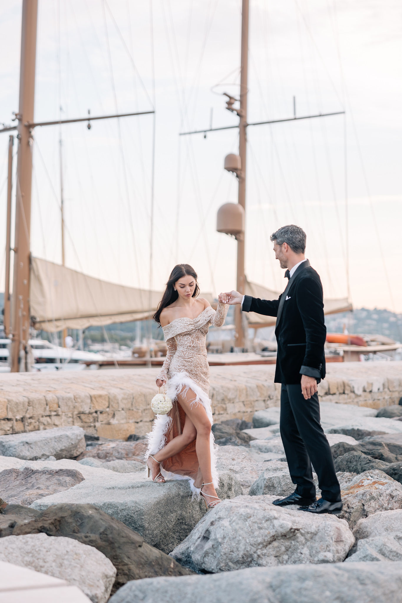Choisir de s’évader à Saint-Tropez, c’est bien plus qu’une escapade romantique : c’est entrer dans un univers où l’intimité et le luxe se conjuguent sur l’un des décors les plus mythiques au monde. Ici, chaque instant se transforme en chef-d’œuvre : des hôtels iconiques aux terrasses baignées de soleil, aux yachts scintillant dans le port, jusqu’aux plages privées où la Méditerranée semble infinie. Saint-Tropez est une scène où le glamour se révèle dans sa forme la plus pure. Flâner dans les ruelles aux teintes pastel, s’arrêter devant les maisons de couture légendaires – la boutique emblématique de Chanel, l’univers raffiné de Dior, l’élégance intemporelle de Ferragamo – avant de s’échapper vers des criques secrètes et des panoramas qui paraissent hors du temps. Chaque recoin de cette destination mythique devient le cadre idéal pour une célébration de mariage à la fois intime et stylée. Alliant effervescence et exclusivité, votre fugue amoureuse à Saint-Tropez peut prendre la forme d’un dîner privé sur le pont d’un yacht, d’une cérémonie au coucher du soleil face à la Méditerranée, ou encore d’une séance photo inspirée de la mode dans les lieux les plus emblématiques de la ville. C’est l’expression ultime du luxe méditerranéen, où l’héritage intemporel rencontre l’élégance contemporaine.